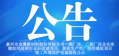 嘉興市金鷹新材料股份有限公司整體技術改造項目 階段性環(huán)境保護設施竣工公示